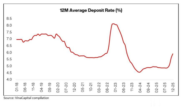 2025年,越南GDP增速超过8%,产生的信贷需求远超进款增速,银行需要更多进款,从而束缚上调进款利率。